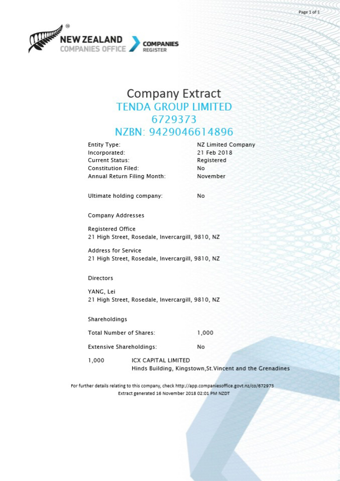 TENDA GROUP LIMITED(腾达集团有限公司)是一家注册金融服务提供商,持有新西兰金融市场管理局颁发的衍生品发行人许可证。